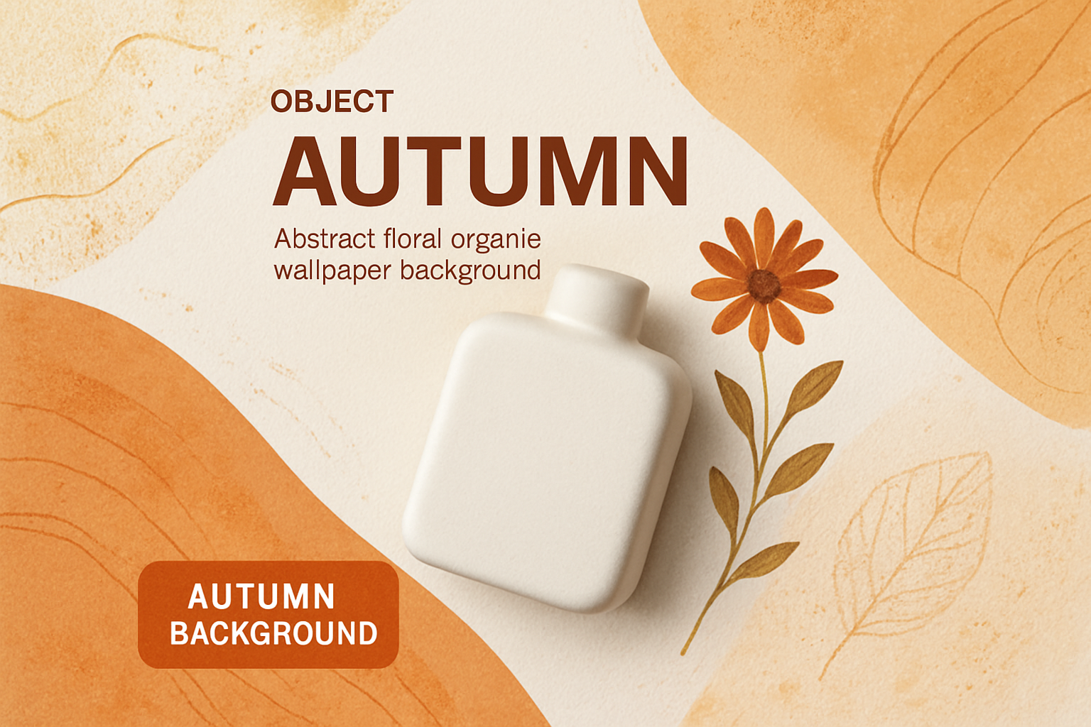 /Collection: /by davooda/Type: PNG/This image features an abstract autumn background with organic lines and floral details. A central white object is highlighted against contrasting warm colors, enhancing its modern aesthetic.