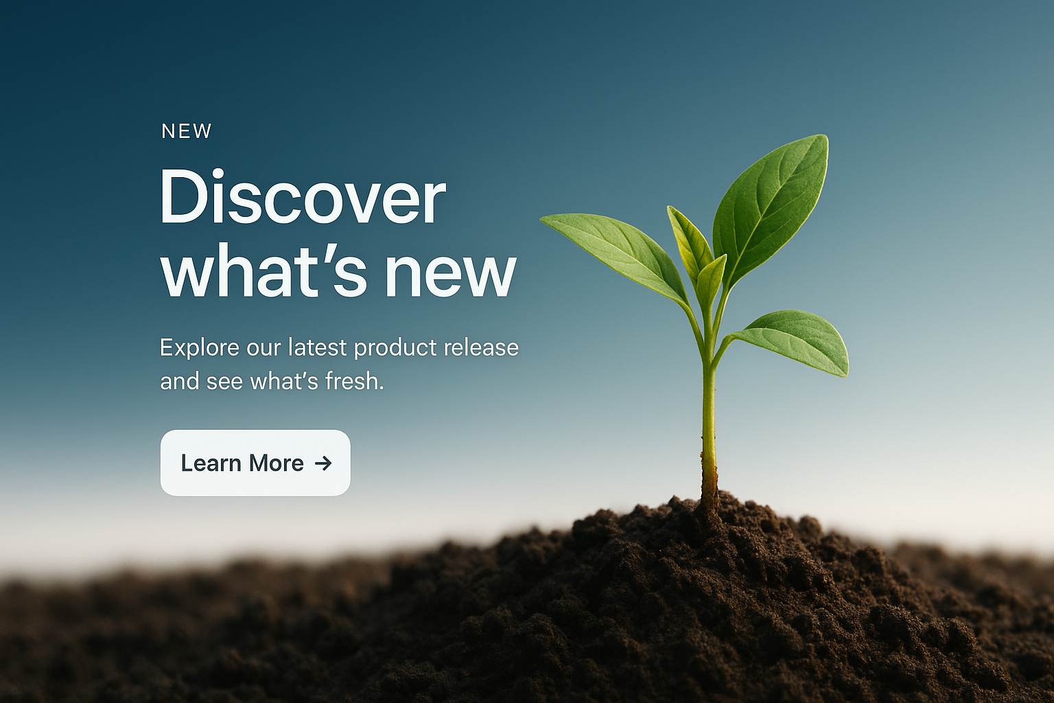 /Collection: /by davooda/Type: PNG/A modern web page design prominently featuring a small green plant sprouting from dark soil, accompanied by a clean call-to-action button. The background transitions from a dark gradient to pure white.