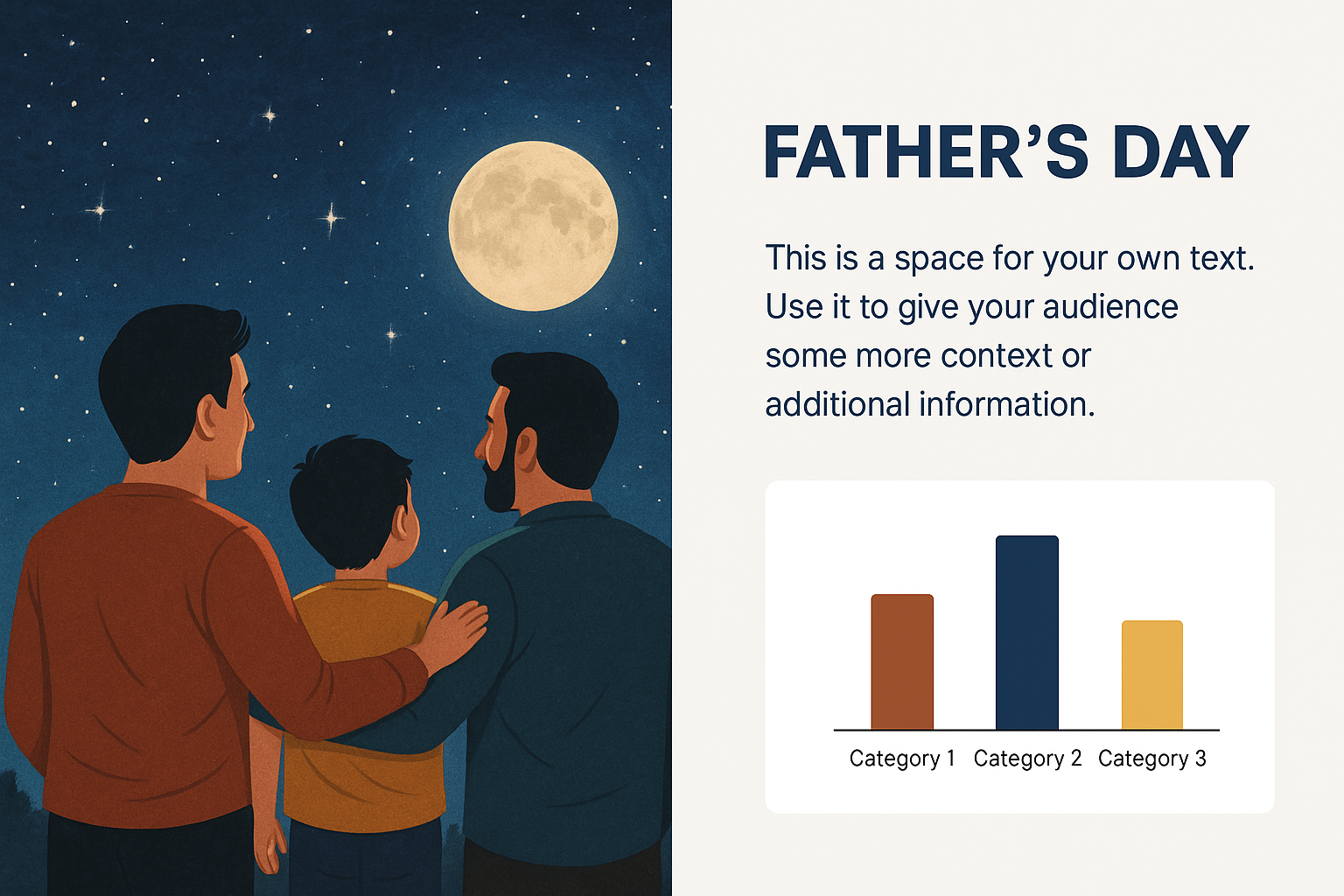 An illustration depicting a heartfelt Father's Day scene with a father and son admiring the moon, paired with a data visualization for additional context, ideal for social media or promotional materials.