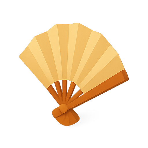 A minimalist and stylized illustration of a decorative folding fan, featuring warm colors and clean lines. Ideal for use in cultural or artistic contexts.