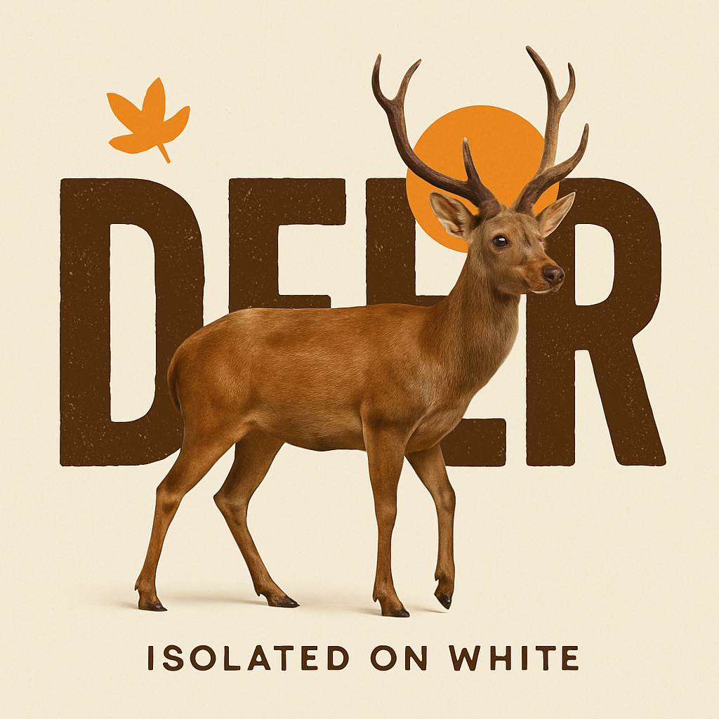 /Collection: /by davooda/Type: PNG/A visually appealing graphic featuring a deer isolated on a light background, accompanied by bold text and simple design elements, ideal for nature-themed projects.