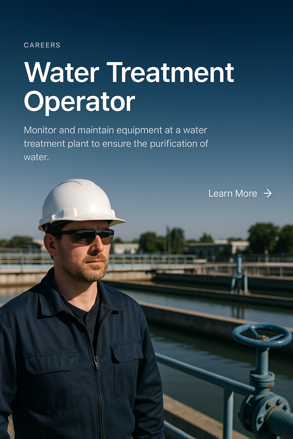 /Collection: /by davooda/Type: PNG/A professional water treatment operator in a safety helmet stands near water treatment facilities. The clean and modern design highlights their role in water purification.