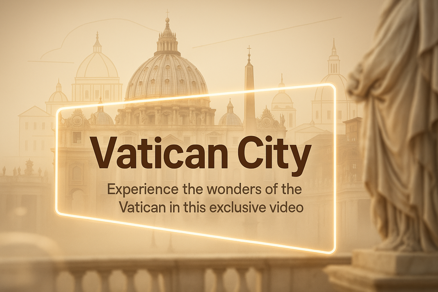 Engaging video thumbnail showcasing Vatican City, featuring a blend of architectural elements and inviting typography, ideal for travel or cultural content.