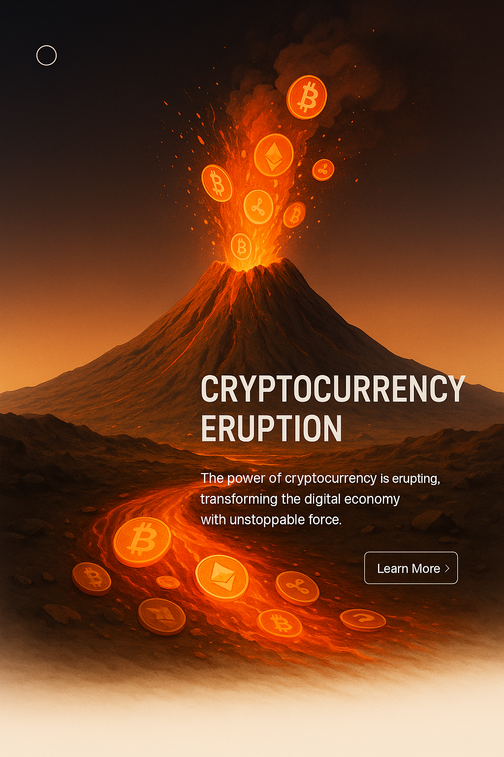 /Collection: /by davooda/Type: PNG/A visually striking illustration depicting a volcano erupting with cryptocurrency symbols. The scene captures the transformative power of digital currencies amidst a gradient backdrop.