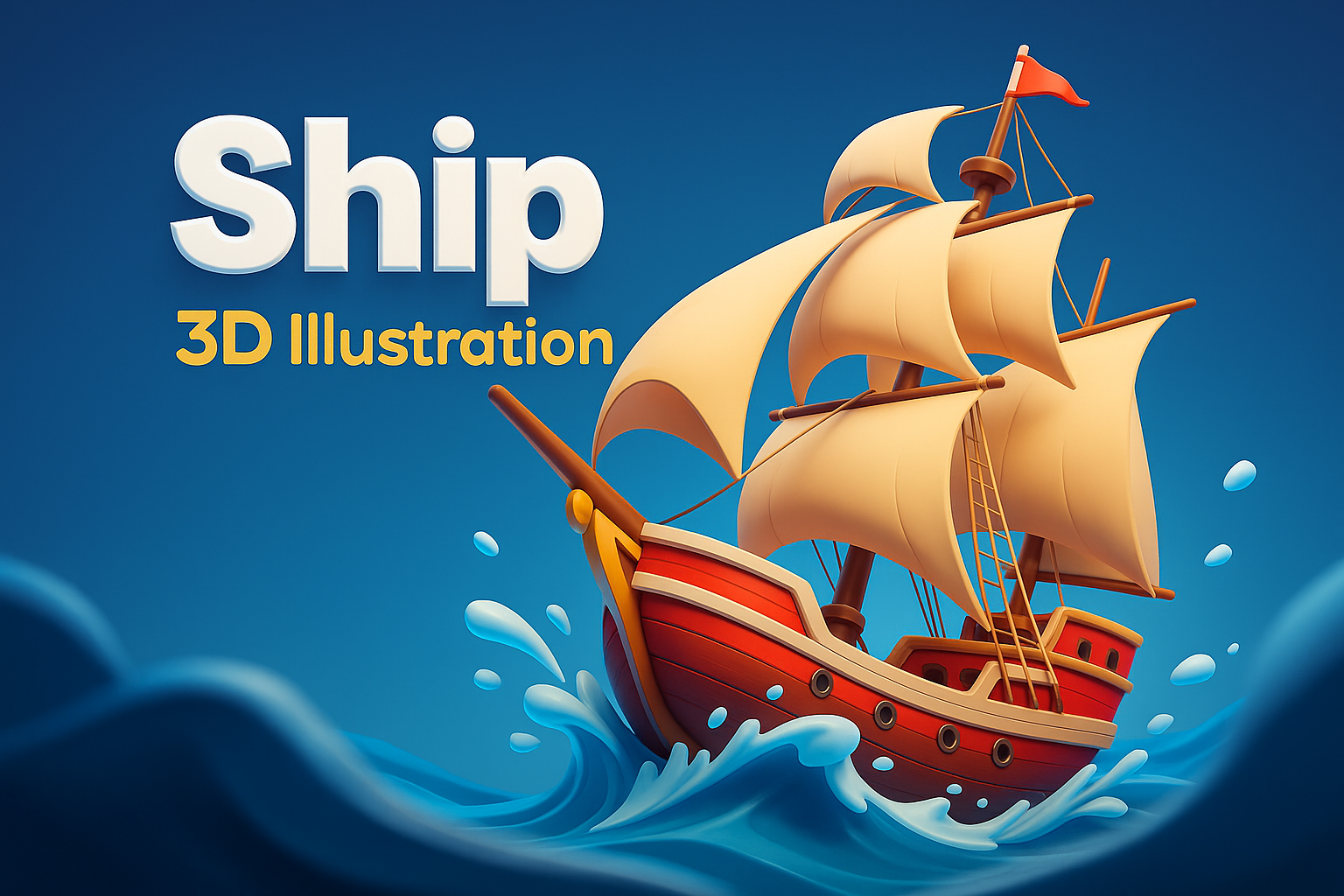 Dynamic 3D Ship Illustration with Engaging Text Design
