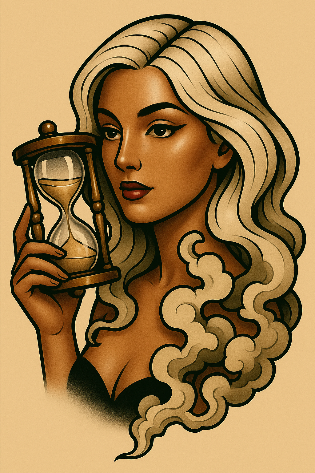 Stylized Tattoo of a Woman with Hourglass and Smoke