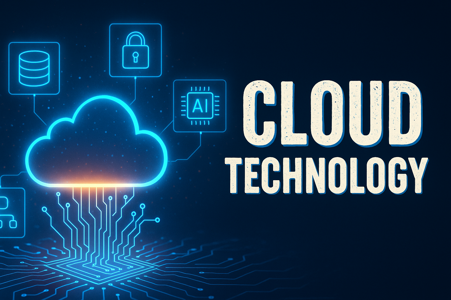 Modern Graphic Representing Cloud Technology with Digital Elements