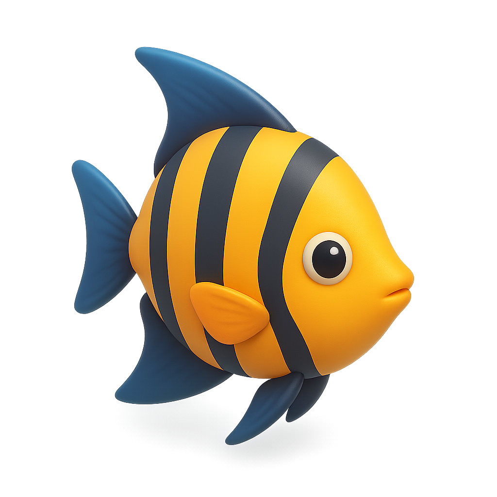 Vibrant 3D Tropical Fish Icon with Isometric View