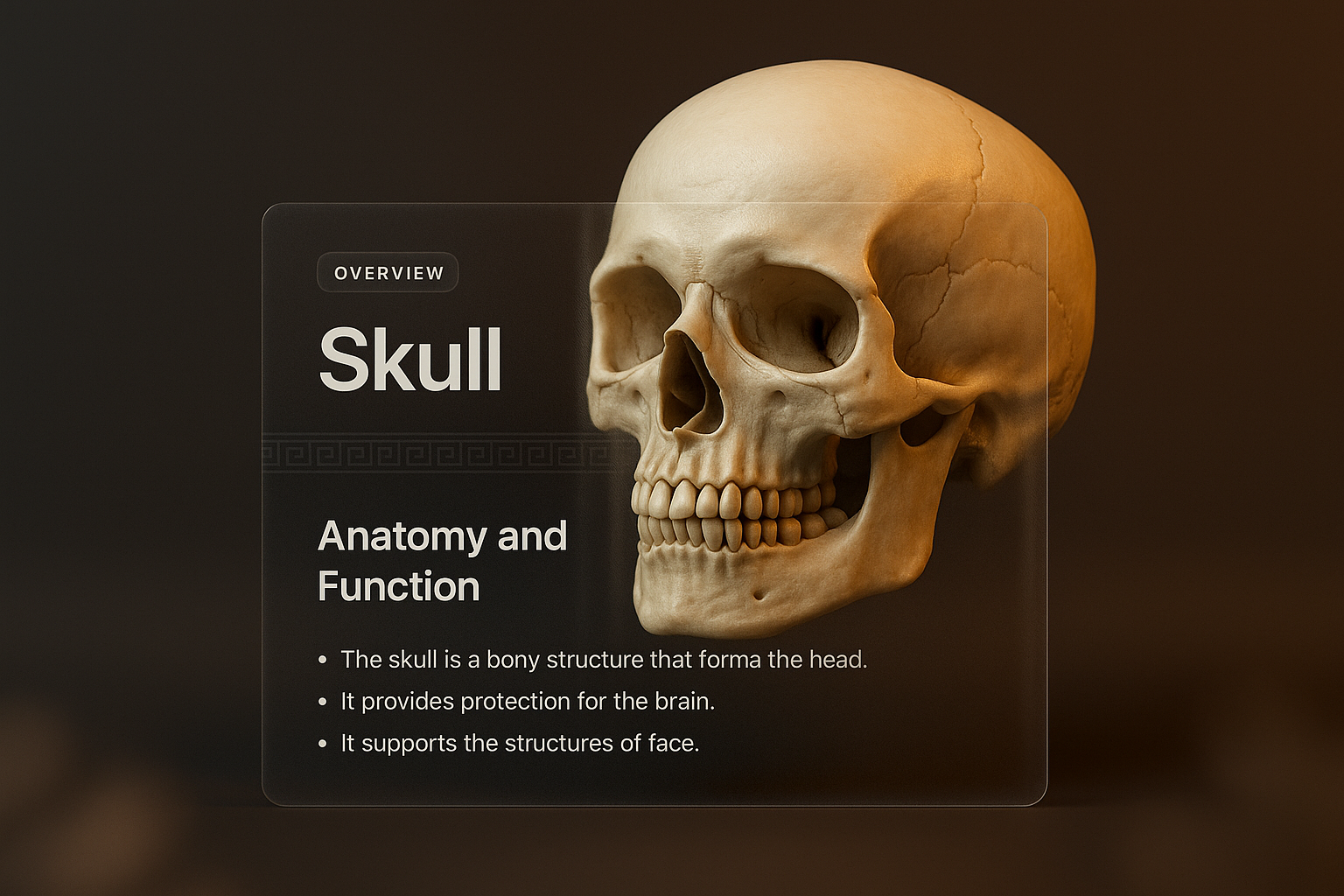 A highly detailed 3D illustration of a skull with transparent elements integrated into the design. The background features a smooth gradient, enhancing the visual appeal.