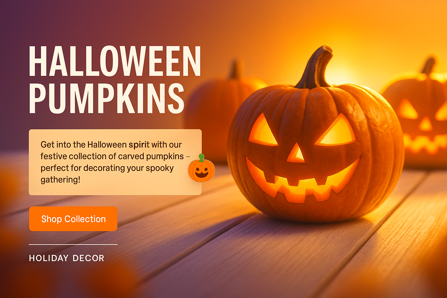 /Collection: /by davooda/Type: PNG/A captivating scene of carved Halloween pumpkins illuminated against a warm backdrop, set on white wooden planks. Perfect for holiday decoration inspiration.