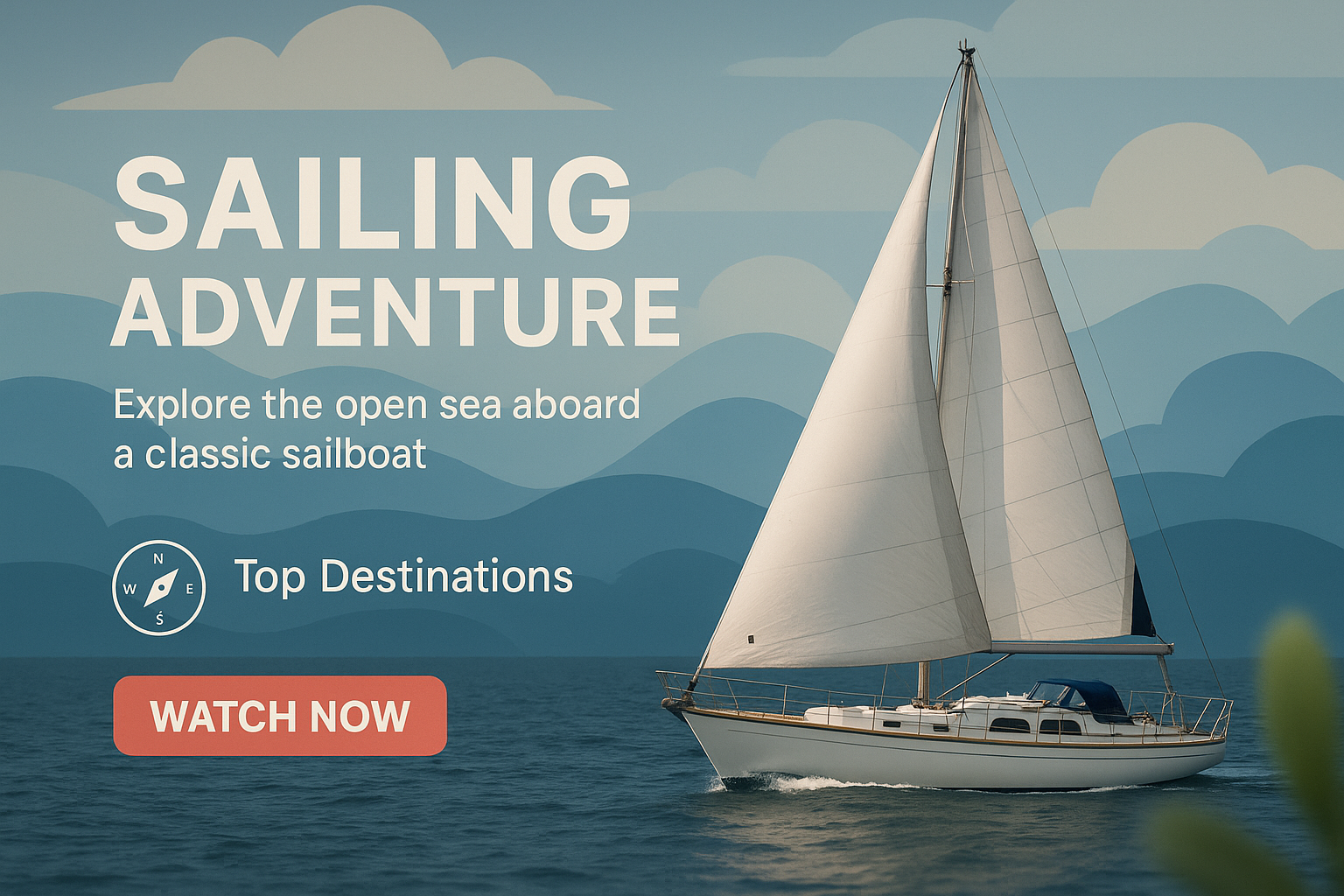 Sailing Guide Promotional Banner with Sailboat Imagery