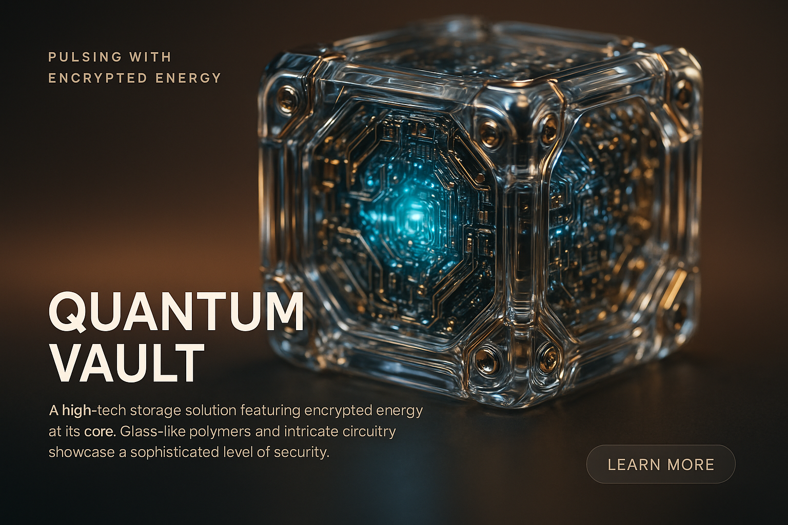 /Collection: /by davooda/Type: PNG/A stunning hyperrealistic depiction of a quantum vault, showcasing its glass-like polymers and glowing micro-LEDs. The intricate circuitry and metallic components reflect light beautifully.