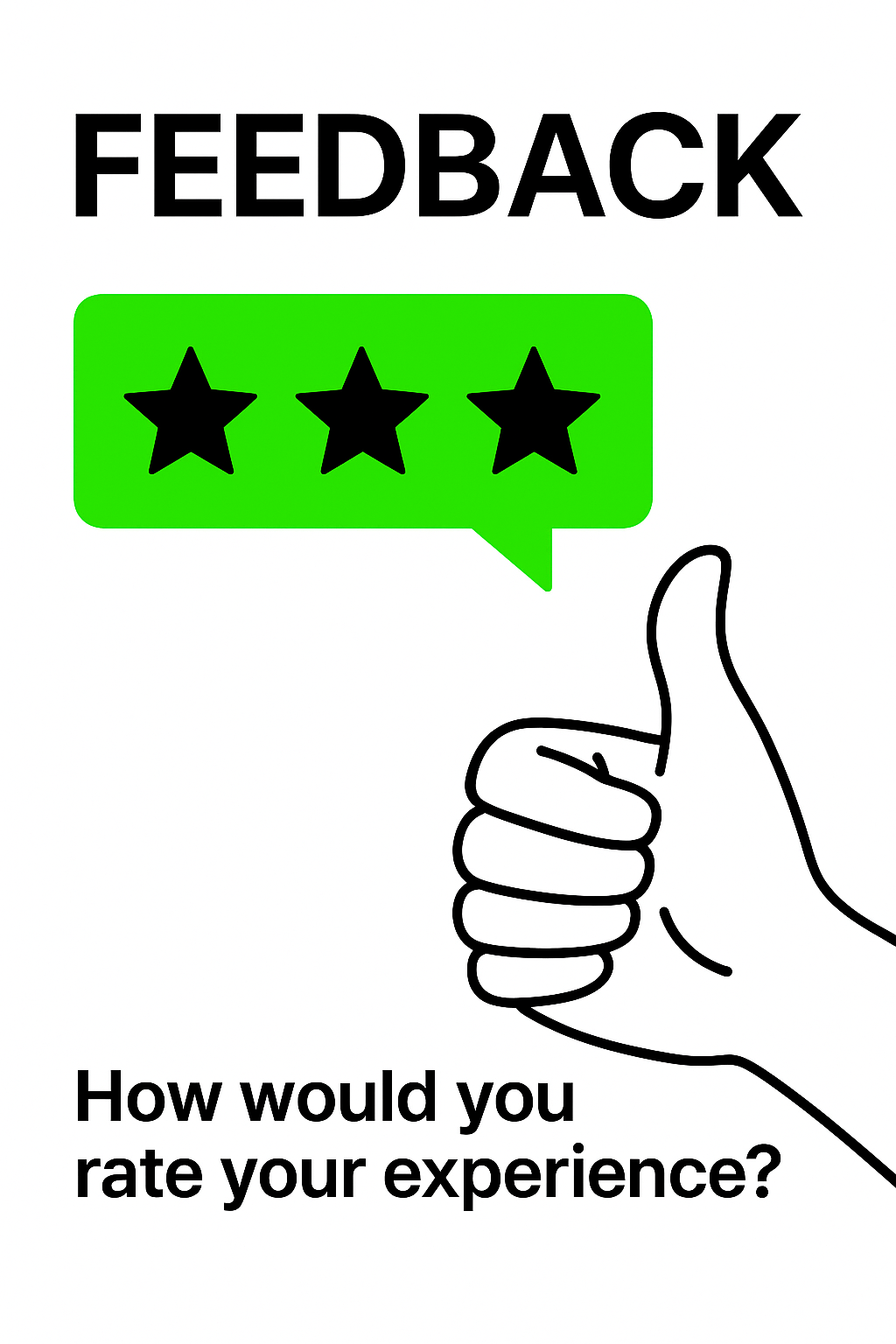 /Collection: /by davooda/Type: PNG/Simple and engaging graphic designed to solicit customer feedback, featuring a thumbs-up hand gesture and star ratings, ideal for surveys or customer experience evaluations.