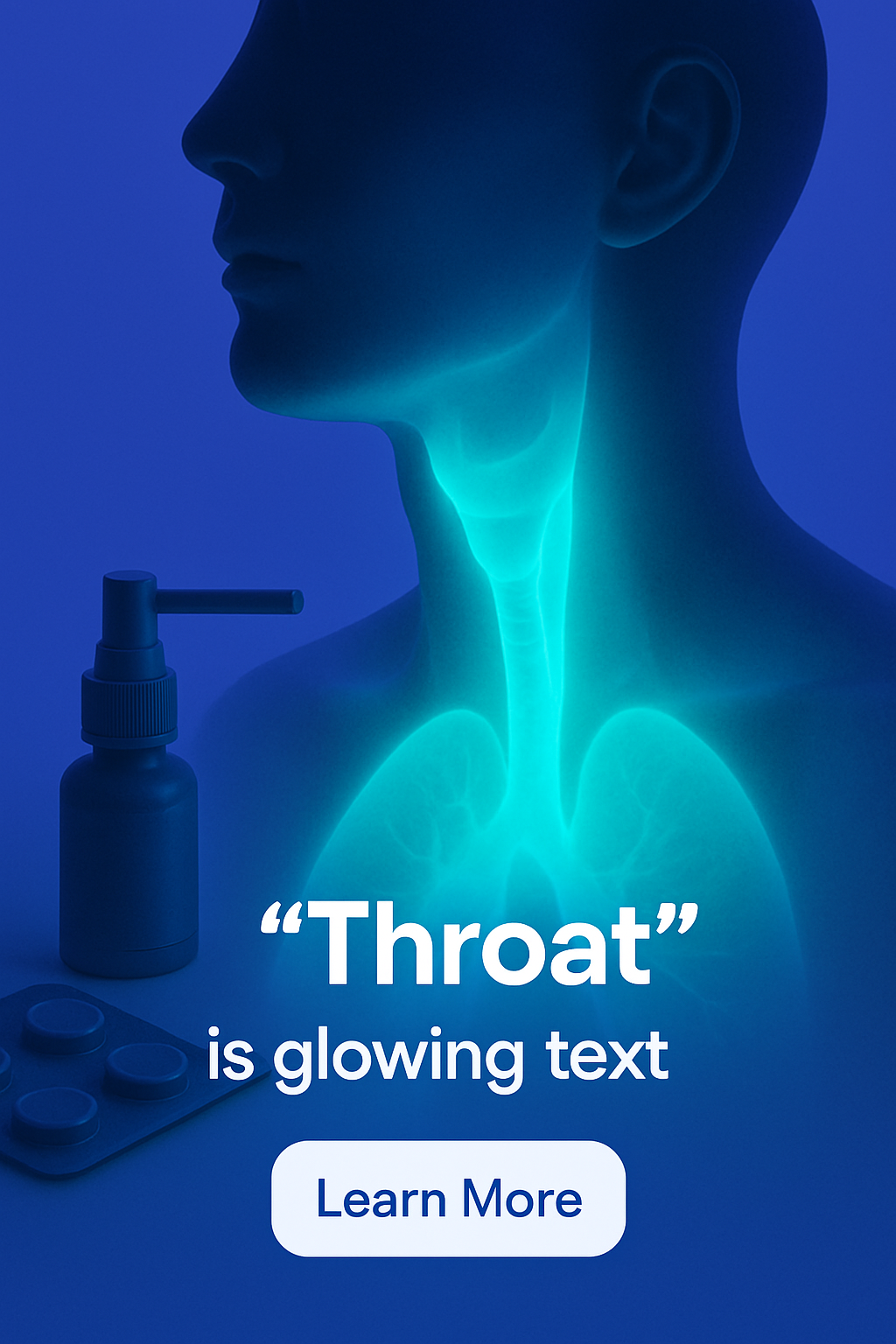Illuminated Throat with Medical Elements in Blue