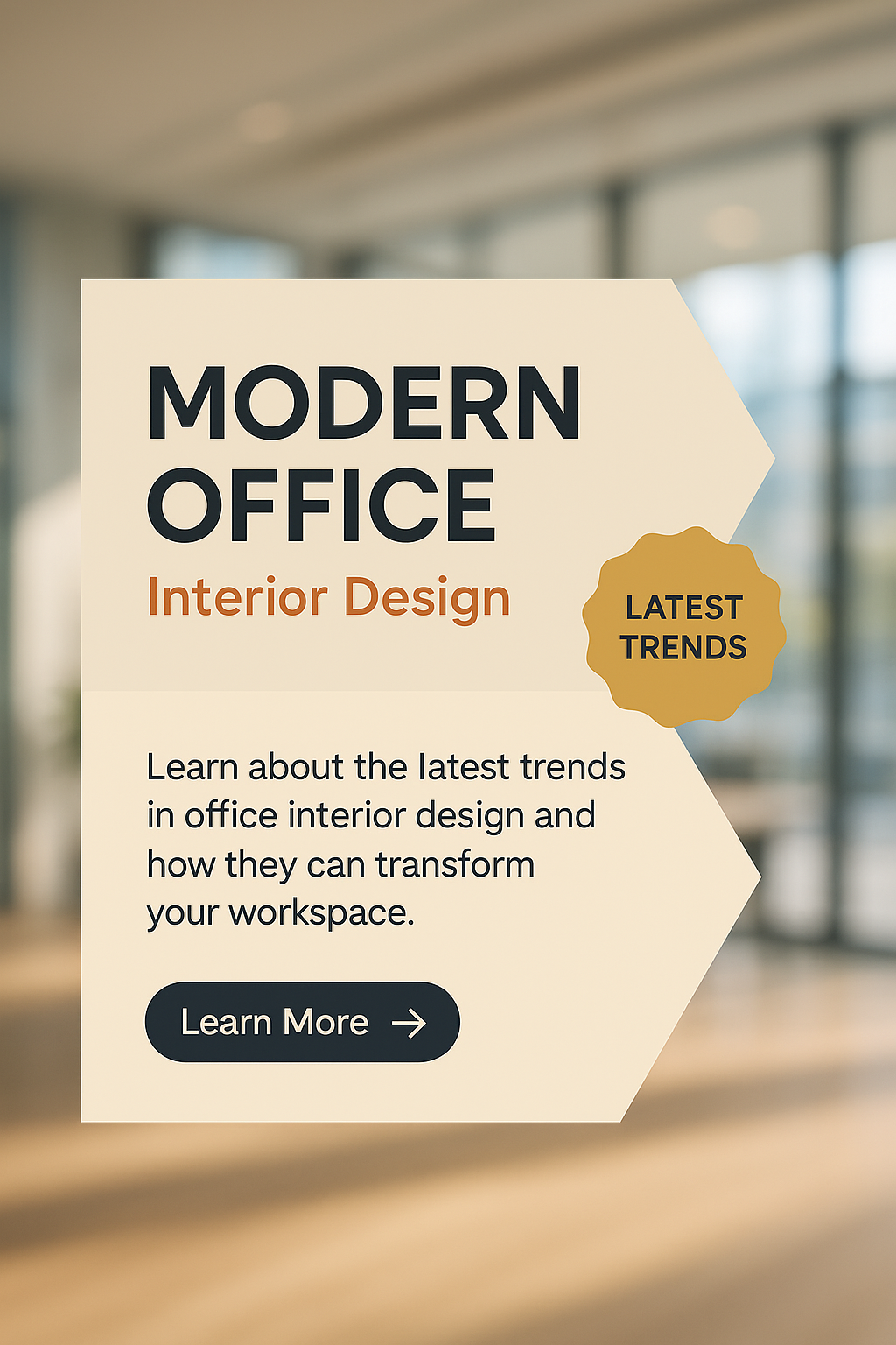 /Collection: /by davooda/Type: PNG/A blurred background featuring a light and airy modern office interior with panoramic windows and stylish lighting. The design includes text elements and a call-to-action button.