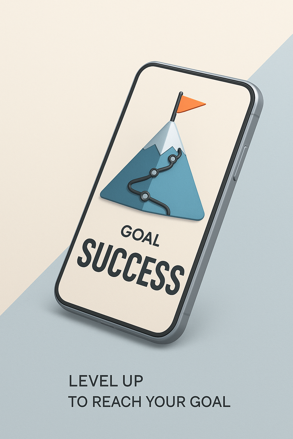 This image showcases a sleek smartphone displaying a motivational design featuring a mountain peak and the word 'SUCCESS' in bold typography. A dynamic diagonal background enhances the modern appeal.