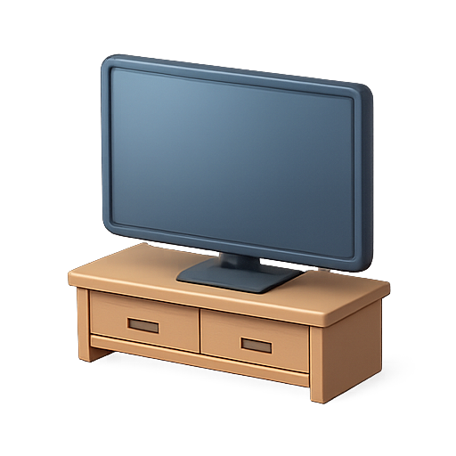 A modern icon representing a television set on a wooden cabinet, featuring a minimalist design suitable for digital platforms.