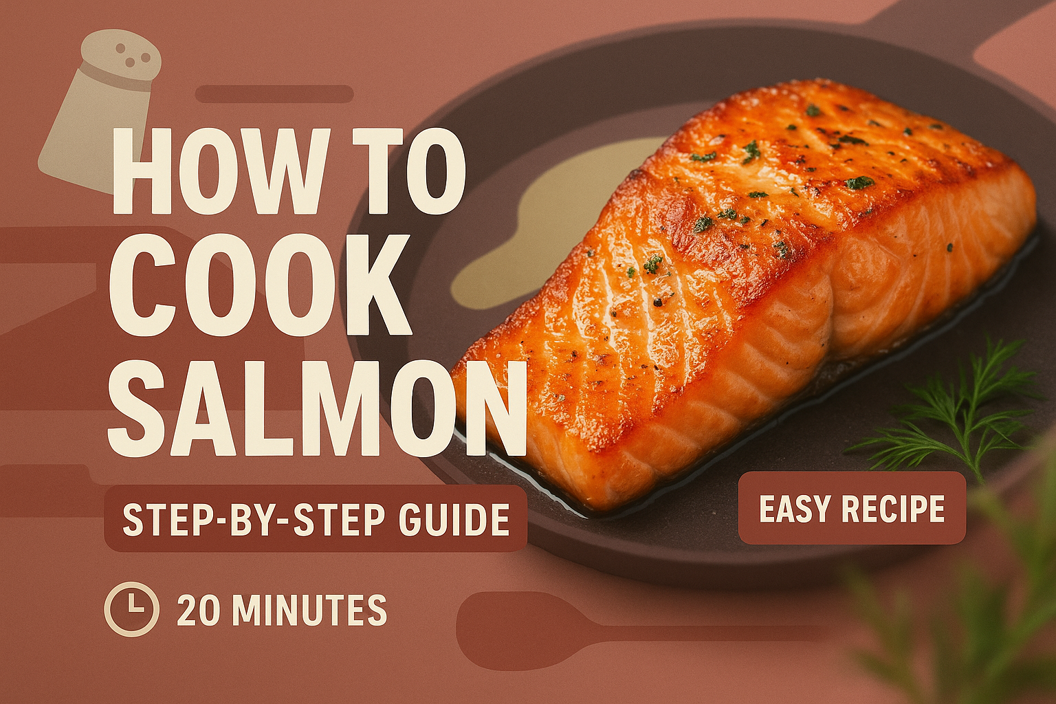 Engaging cooking recipe graphic featuring salmon with step-by-step instructions, perfect for culinary enthusiasts looking for easy meal prep ideas.