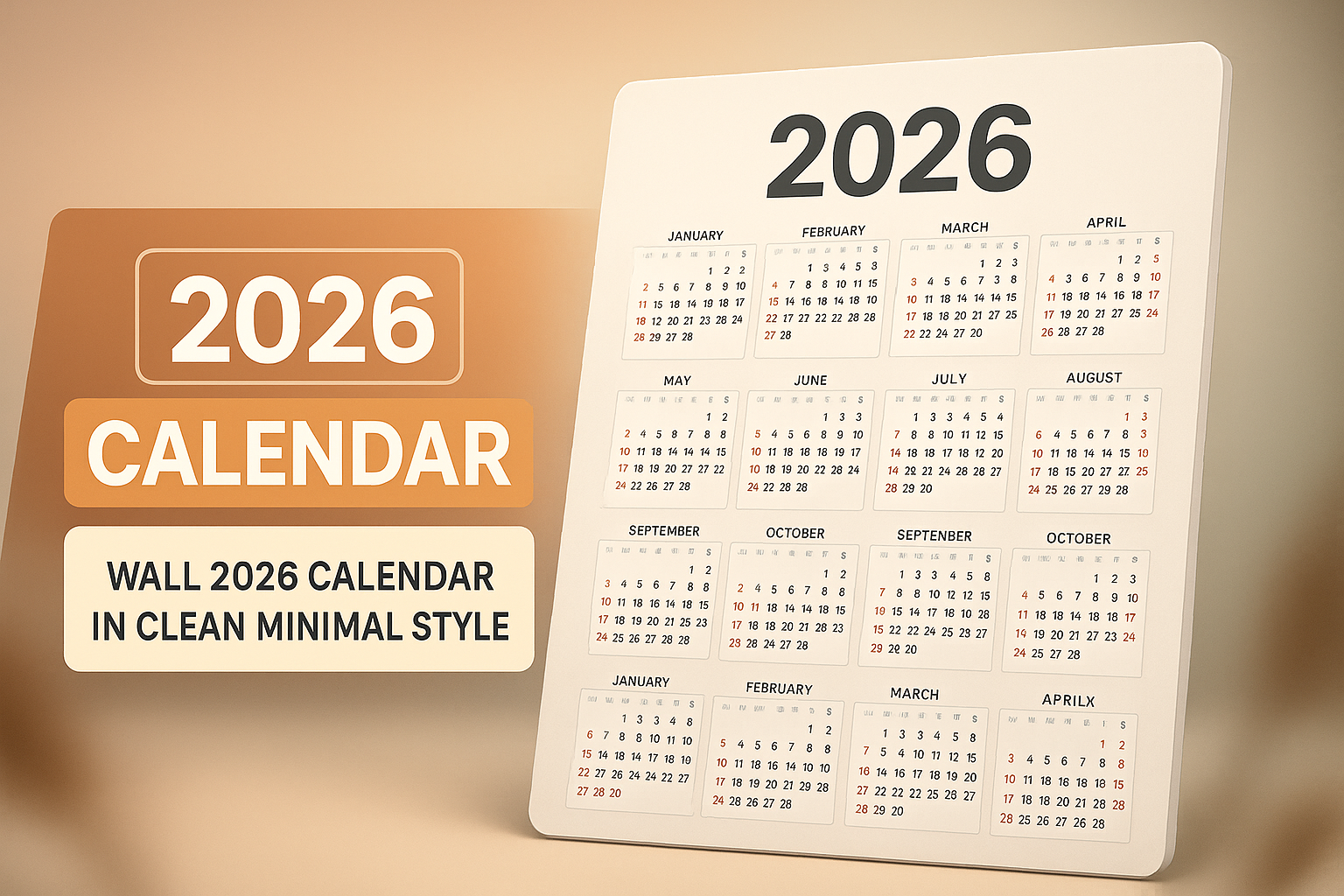 Clean and modern wall calendar design for 2026, featuring a minimal aesthetic suitable for home or office decor. Ideal for time management and planning.