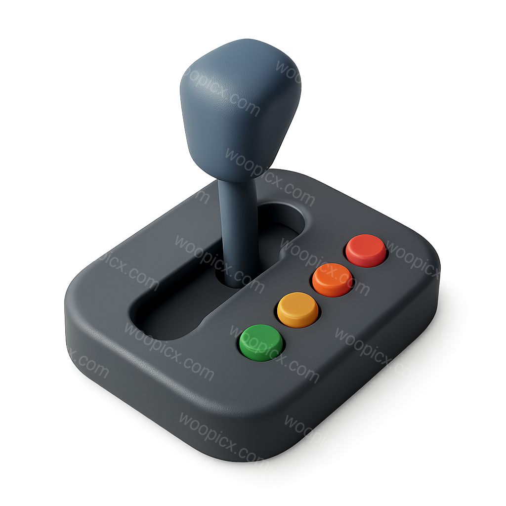 /Premium/Collection: /by davooda/Type: PNG/A detailed 3D isometric icon of a game controller featuring a joystick and four colorful buttons. The design has a sleek, modern appearance with a volumetric feel and transparent background.