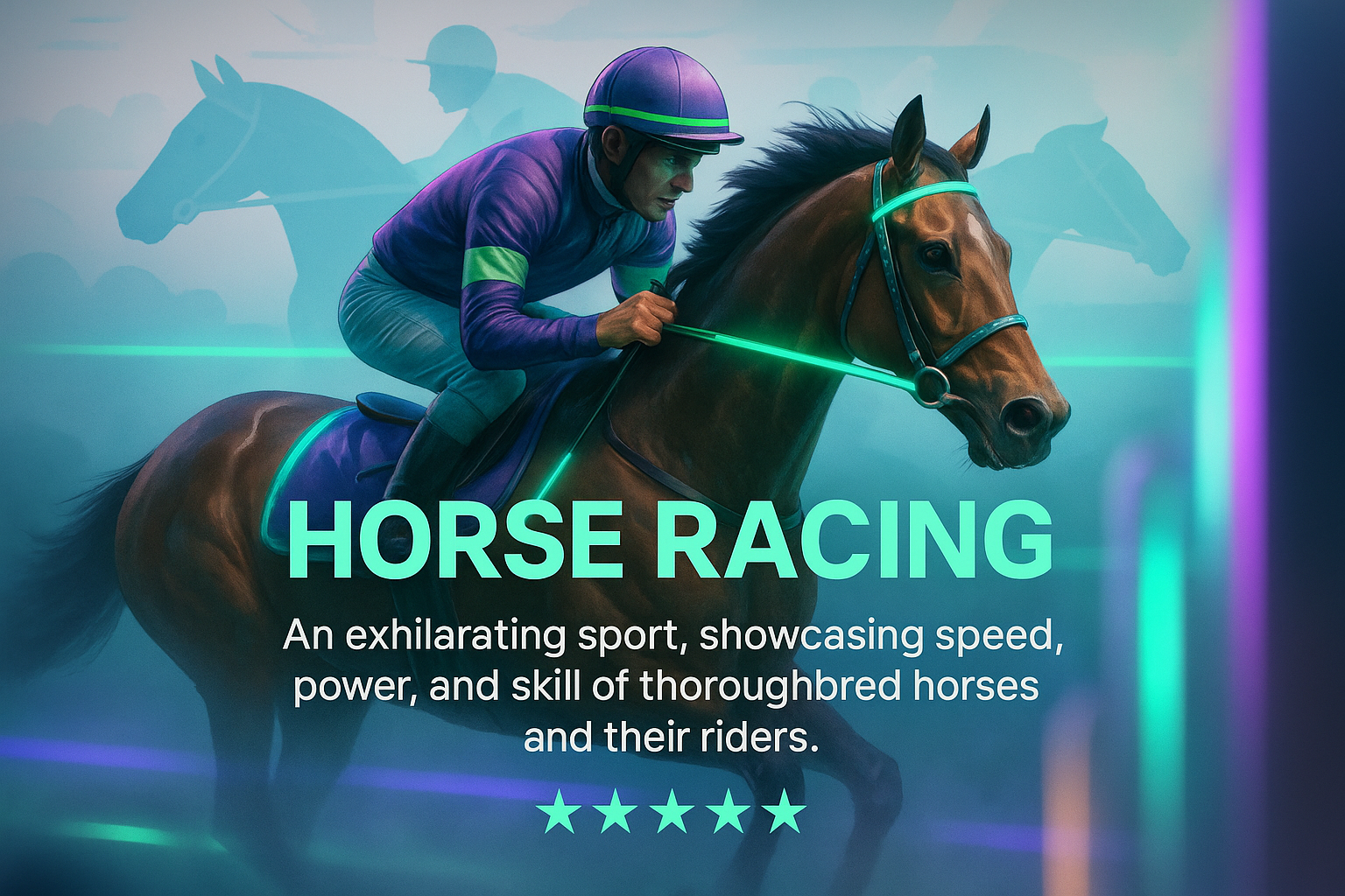 Dynamic Horse Racing Promotional Graphic with Neon Effects