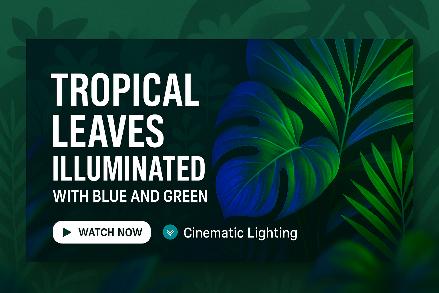 Stylized Visual Guide on Tropical Leaves with Blue and Green Illumination
