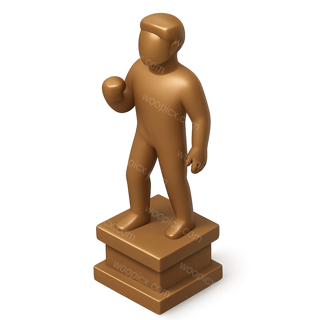A 3D bronze statue icon depicted in a three-quarter view, showcasing a stylized figure standing on a pedestal. The icon features a smooth, volumetric design with a glossy finish.