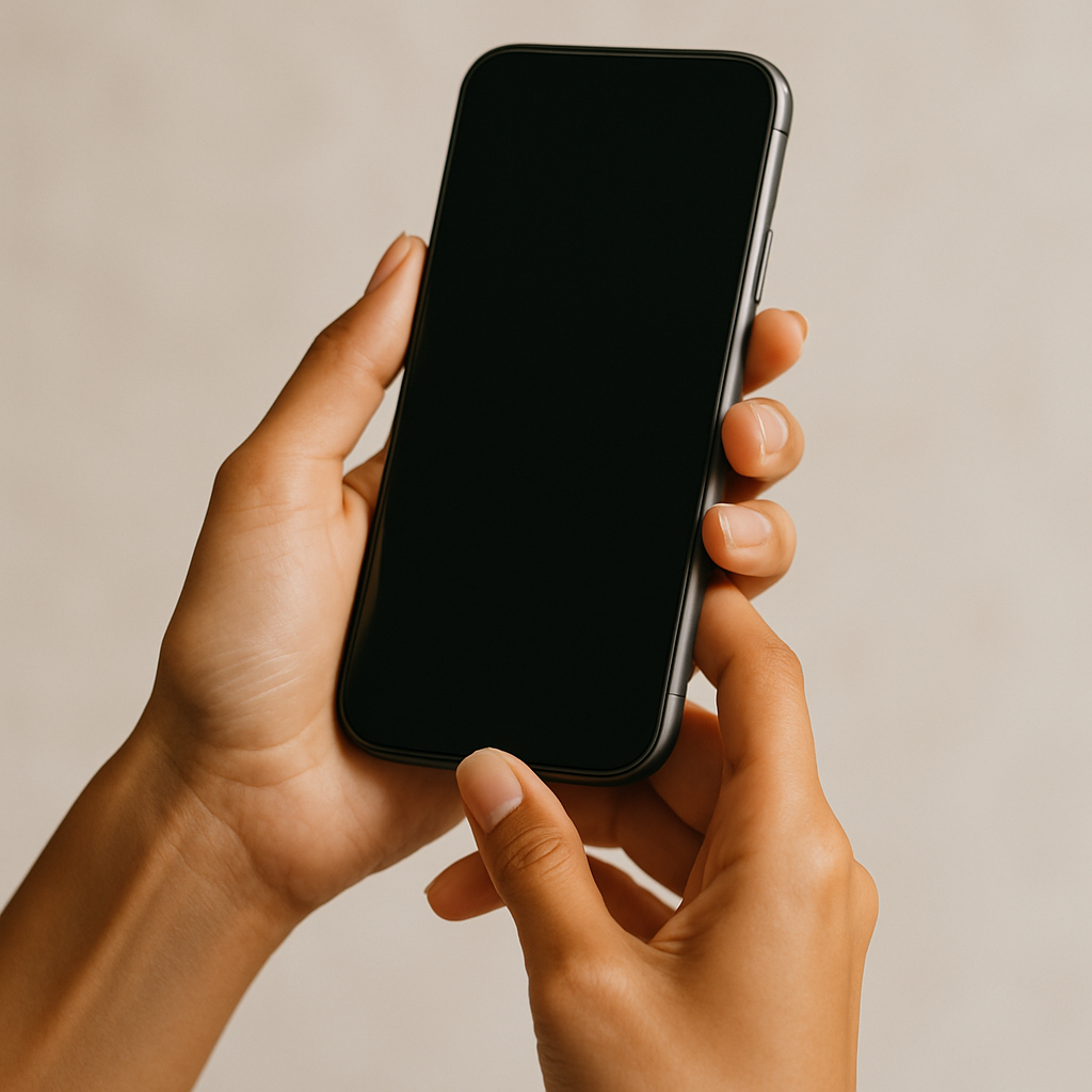 /Collection: /by davooda/Type: PNG/A close-up image featuring a person holding a smartphone against a soft, neutral background. This visual emphasizes the device's sleek design, suitable for technology or lifestyle content.