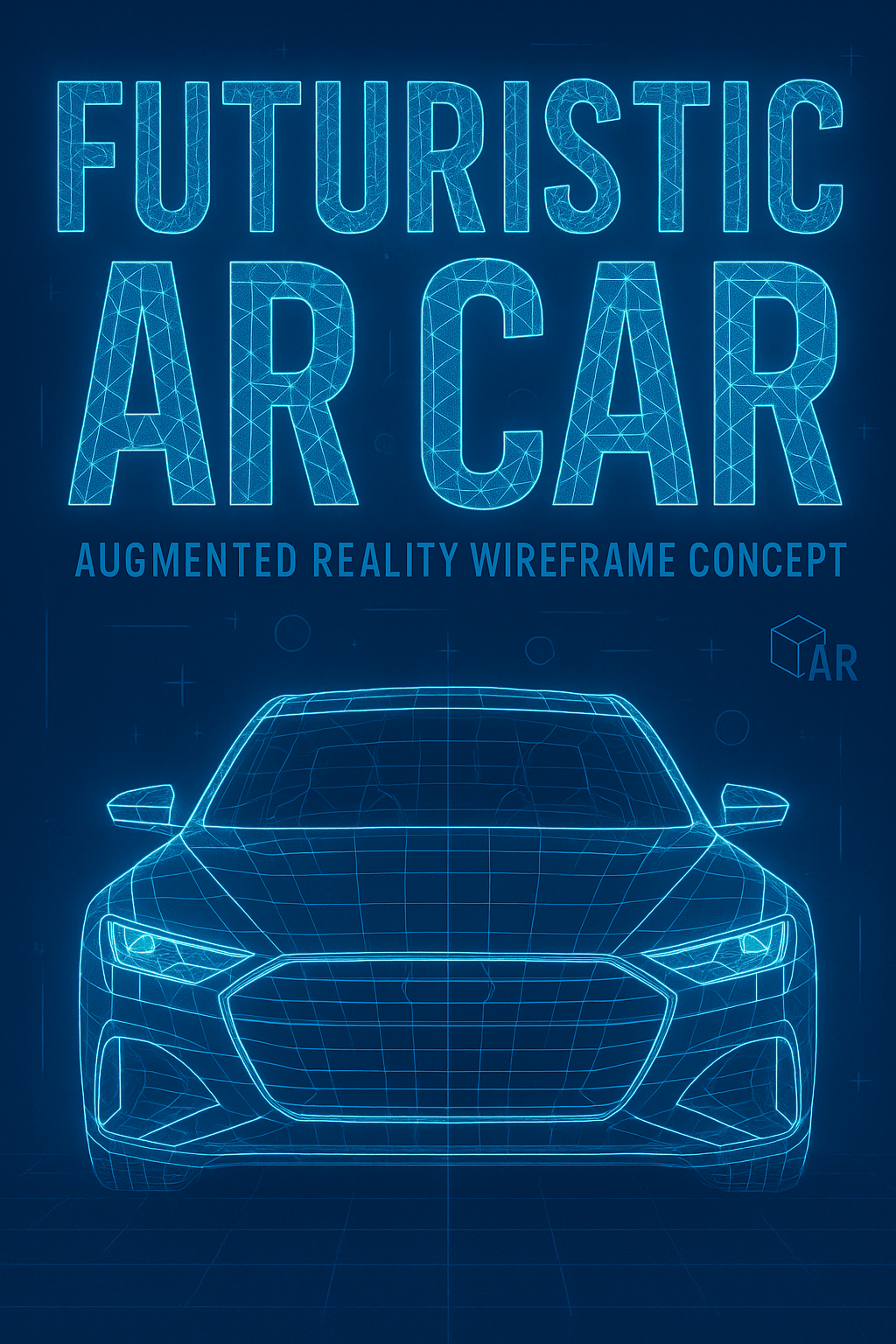 A sleek wireframe depiction of a futuristic car, showcasing augmented reality concepts with a modern, digital aesthetic. Ideal for tech-related presentations or automotive innovation showcases.