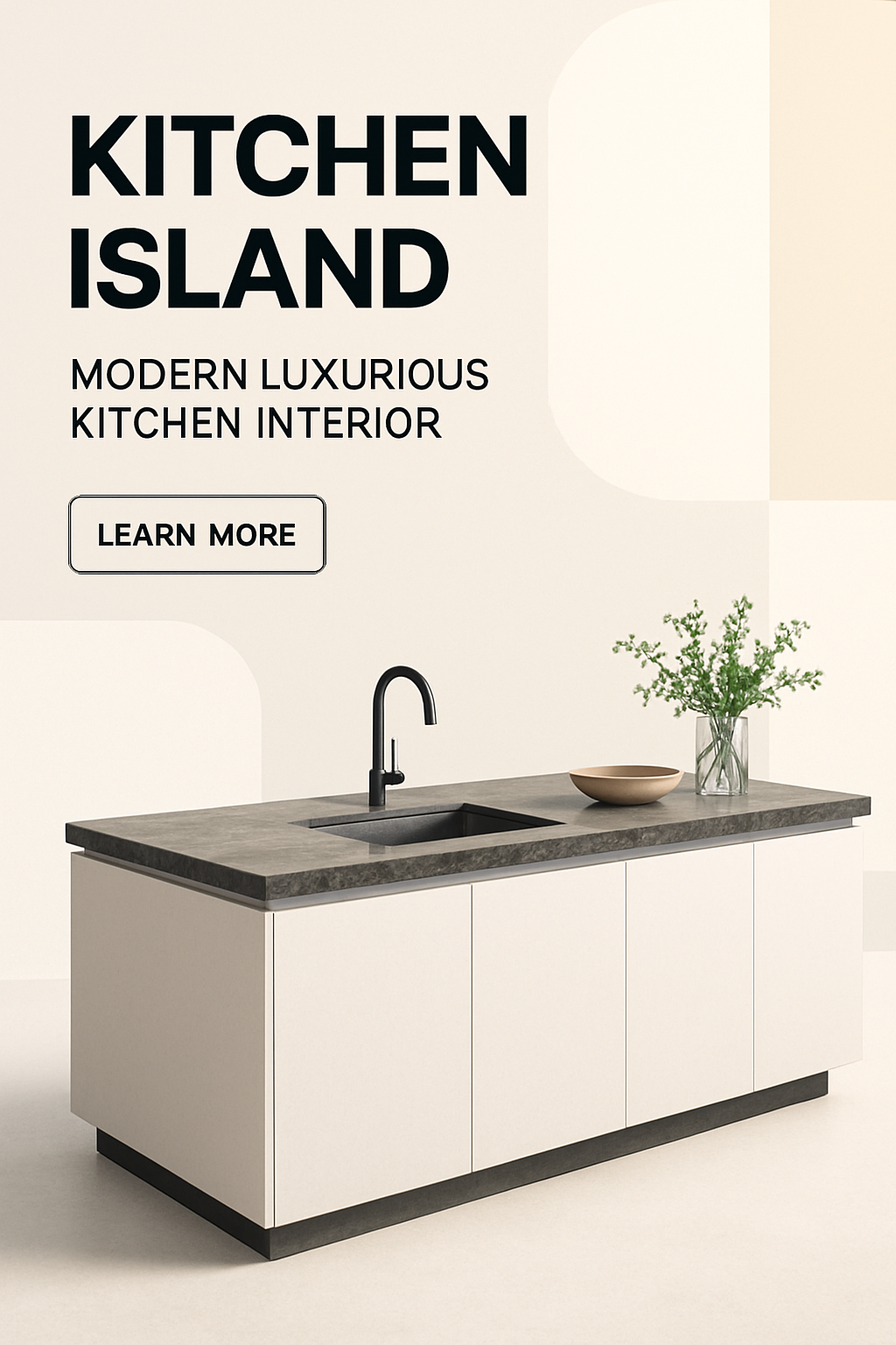 /Collection: /by davooda/Type: PNG/A sleek, modern kitchen island featuring a minimalist design with geometric background elements. The composition includes bold typography and a call-to-action button, emphasizing clarity and balance.
