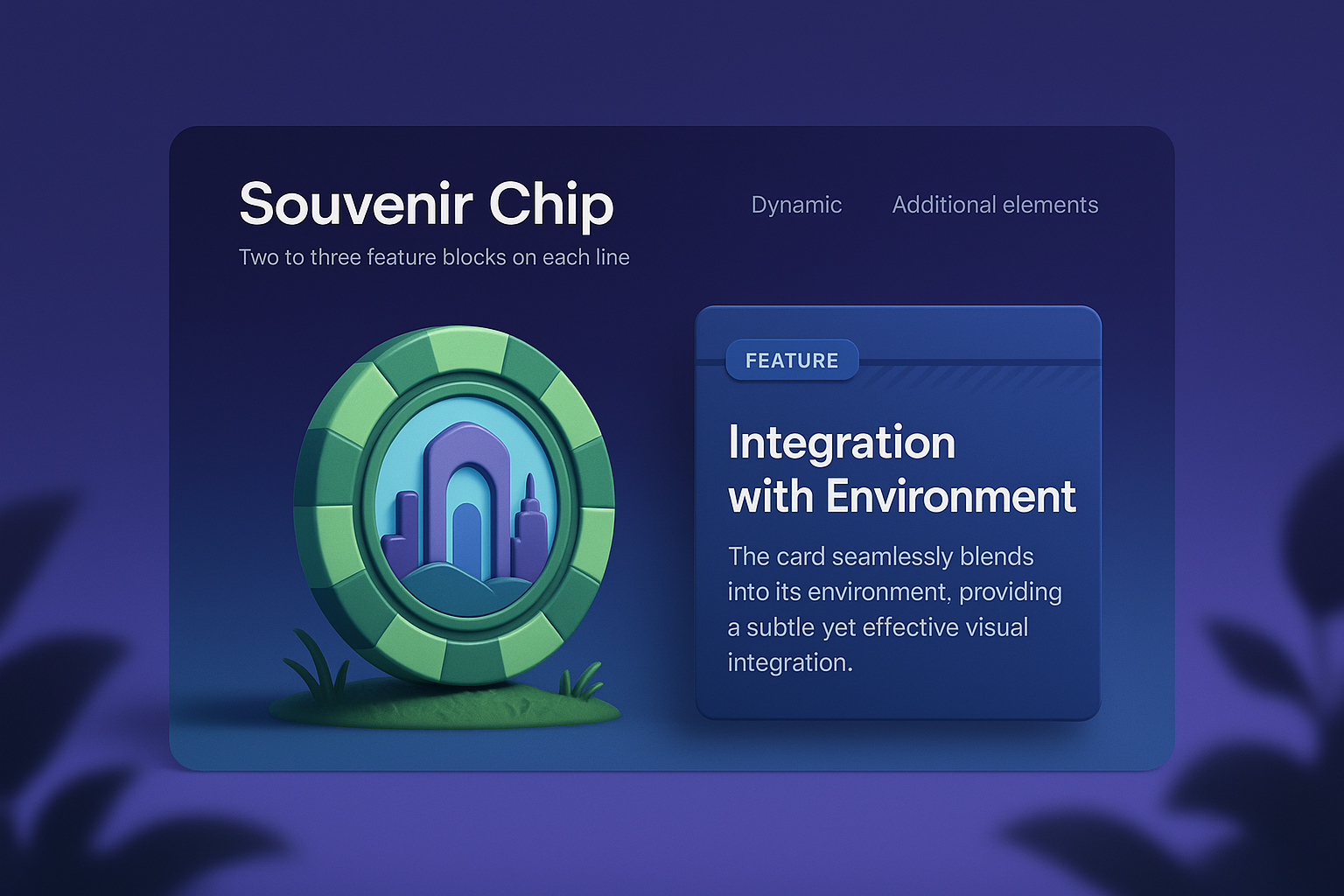 A visually striking 3D illustration of a souvenir chip integrated with informative blocks. The design features gradient backgrounds, dynamic elements, and text highlighting the chip's features.