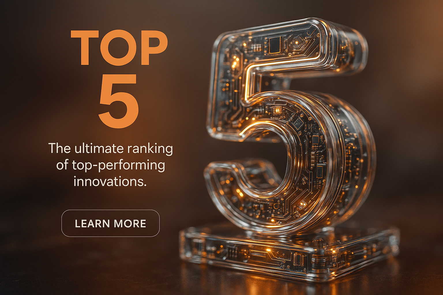 High-Tech Neon Design Featuring 'TOP 5' in 3D Hyperrealistic Style