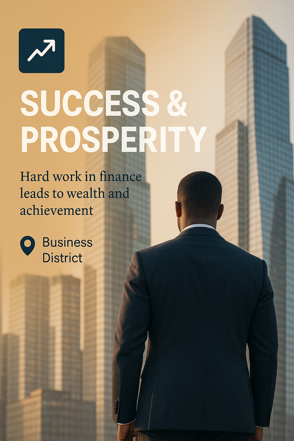 A professional image depicting a man in a suit overlooking a city skyline, symbolizing success in finance. Ideal for business and motivational content.