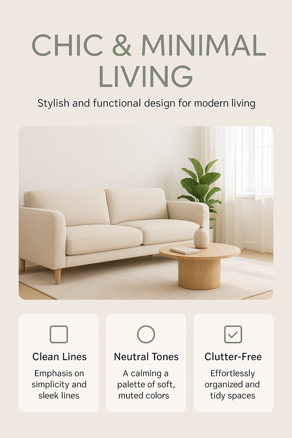 Stylish image showcasing a minimalist living room design with neutral tones, clean lines, and functional elements, ideal for home decor inspiration.