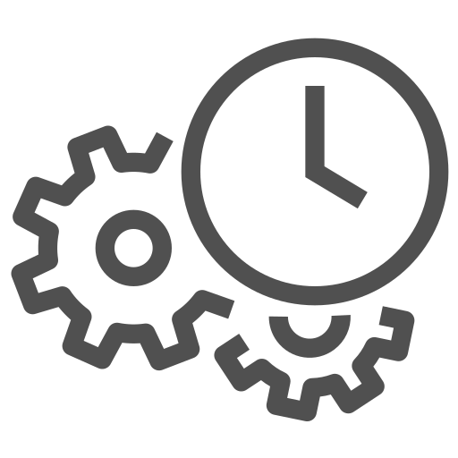 outline simple icon: clock, efficiency, gears, planning, productivity