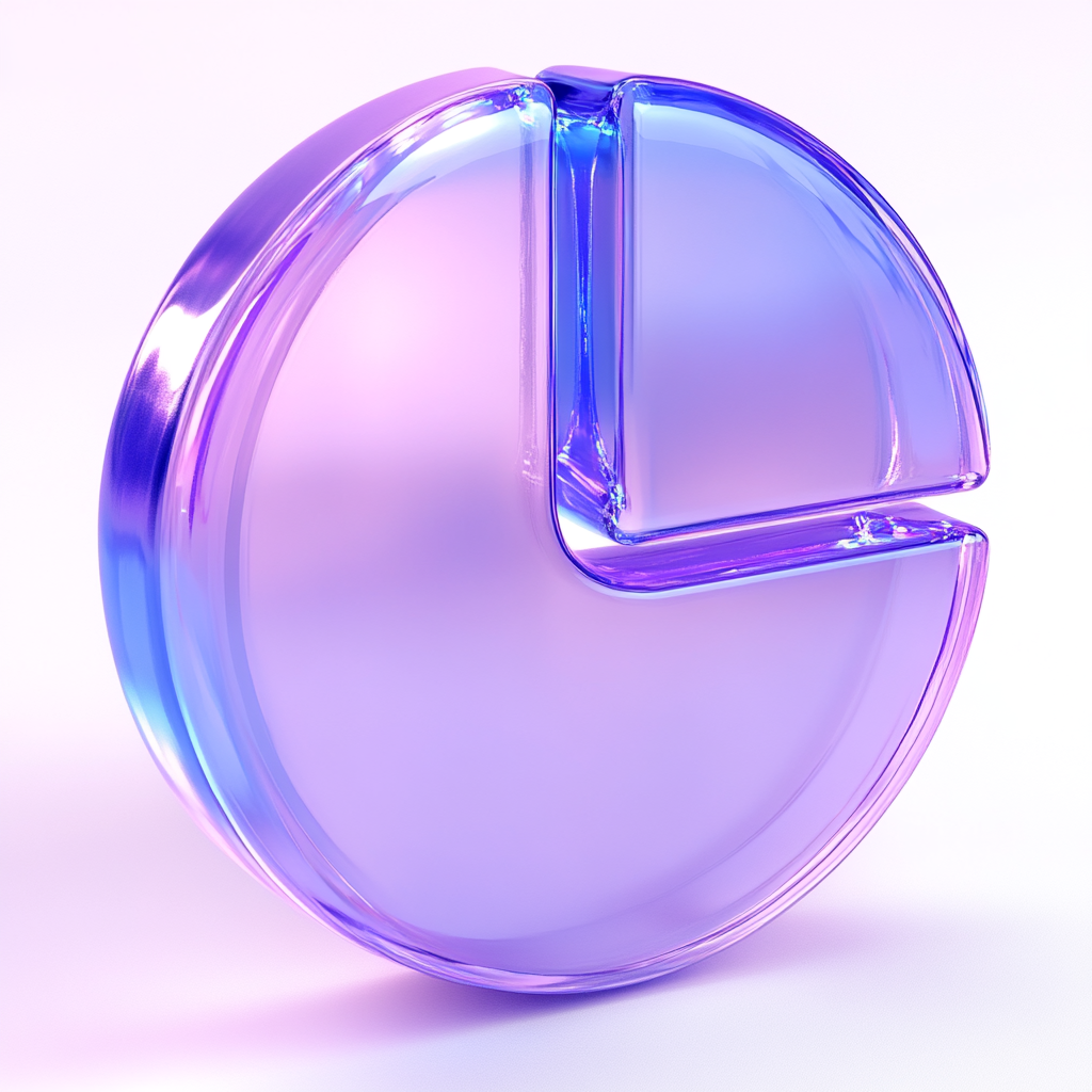 Stylized Transparent Glass Pie Chart with Gradient Colors