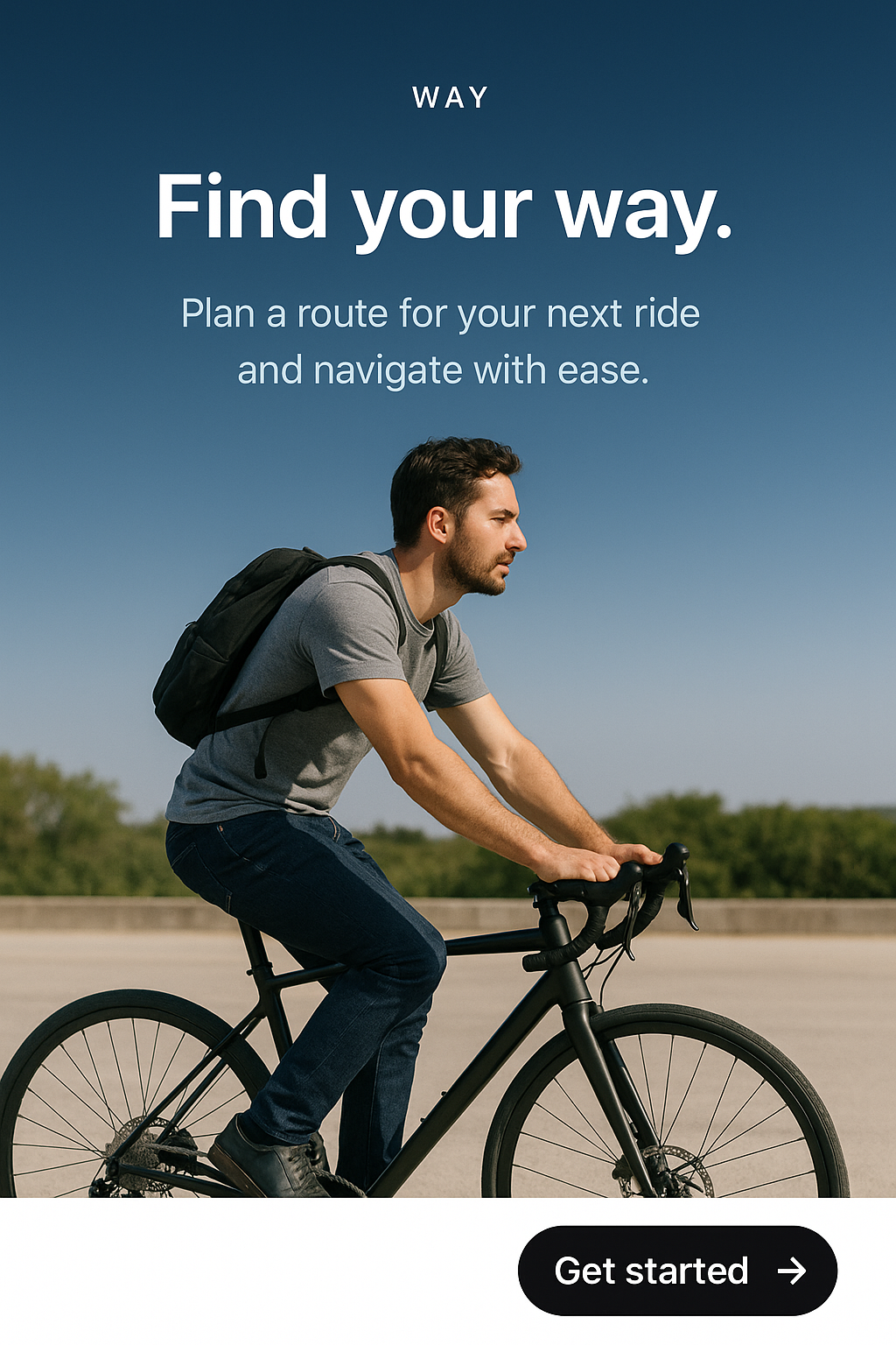A modern web page design featuring a cyclist with a clean gradient background. The layout includes a catchy heading, a brief text block, and a prominent action button to encourage user engagement.
