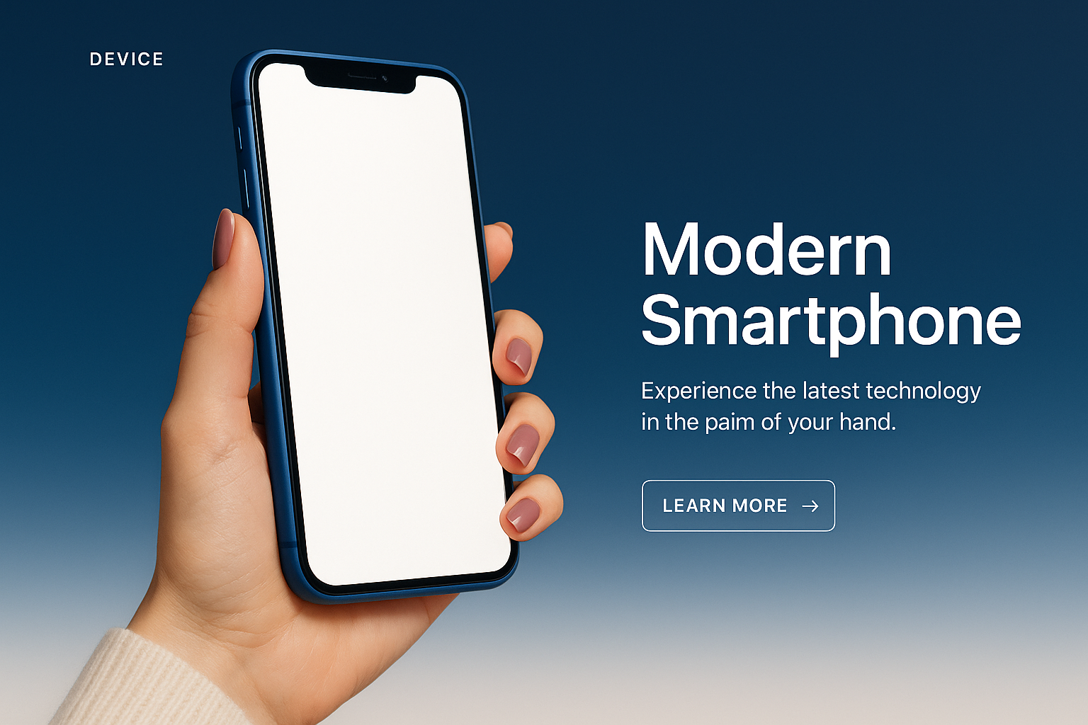 Stylish Blue Smartphone in Hand with Modern Design Elements