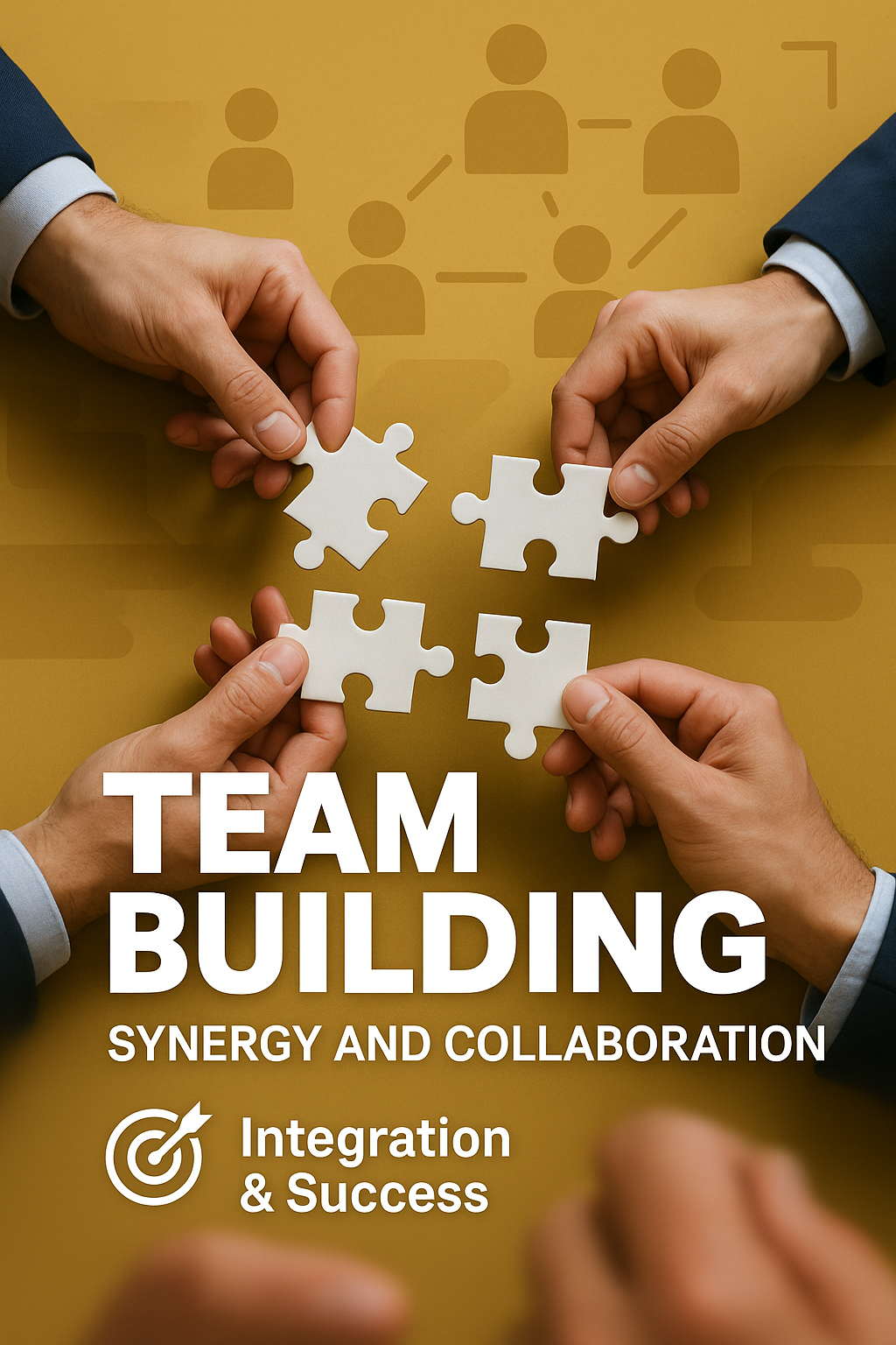 /Collection: /by davooda/Type: PNG/Engaging graphic representing team building through hands joining puzzle pieces, illustrating synergy and collaboration. Ideal for corporate training materials and workshops.