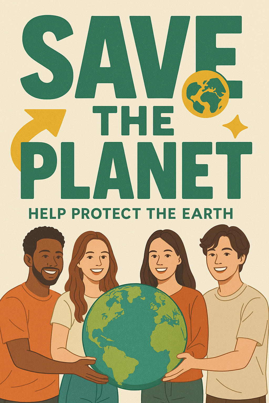 Environmental Awareness Illustration with Diverse Group Holding Earth