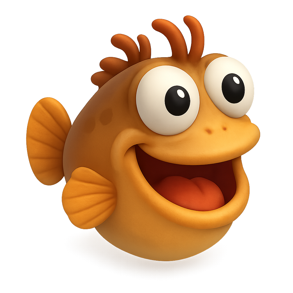 Comical 3D Blenny Icon with Playful Expression