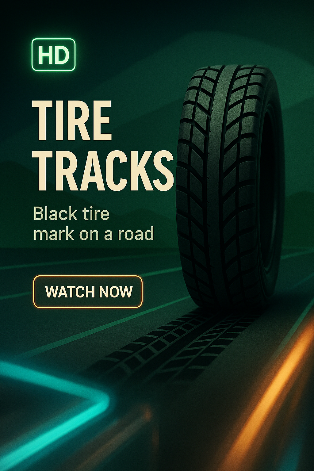Stylized image featuring a prominent tire track on a road, designed with modern visual elements. Ideal for automotive or transportation-related content.