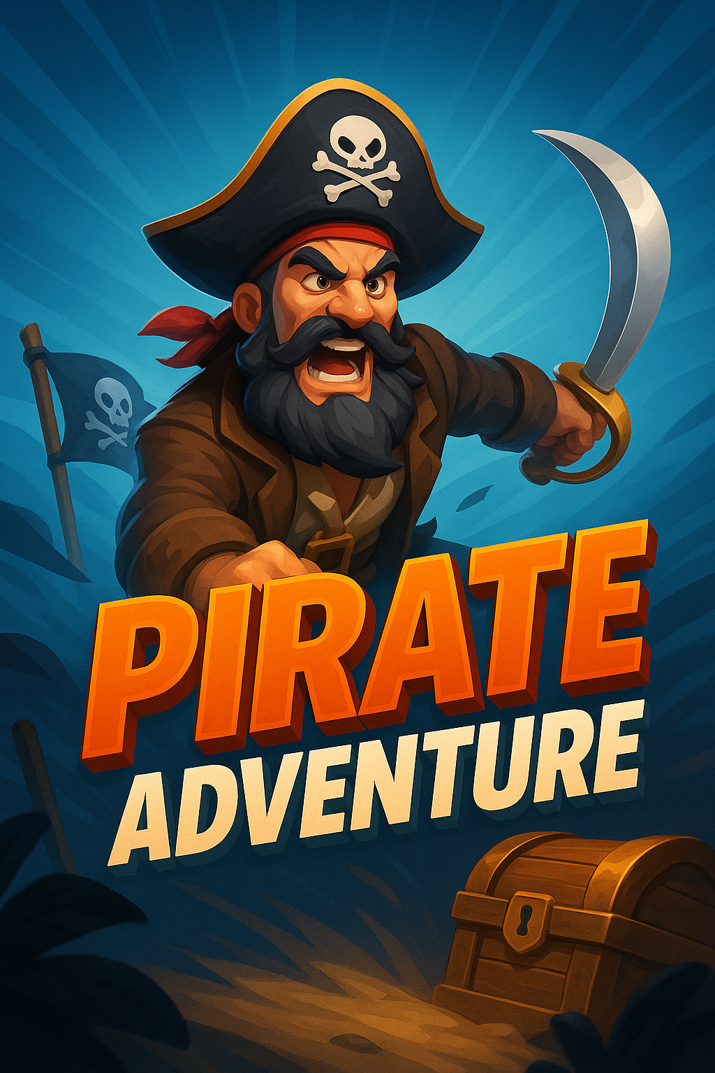 Dynamic Pirate Adventure Scene with Bold Typography