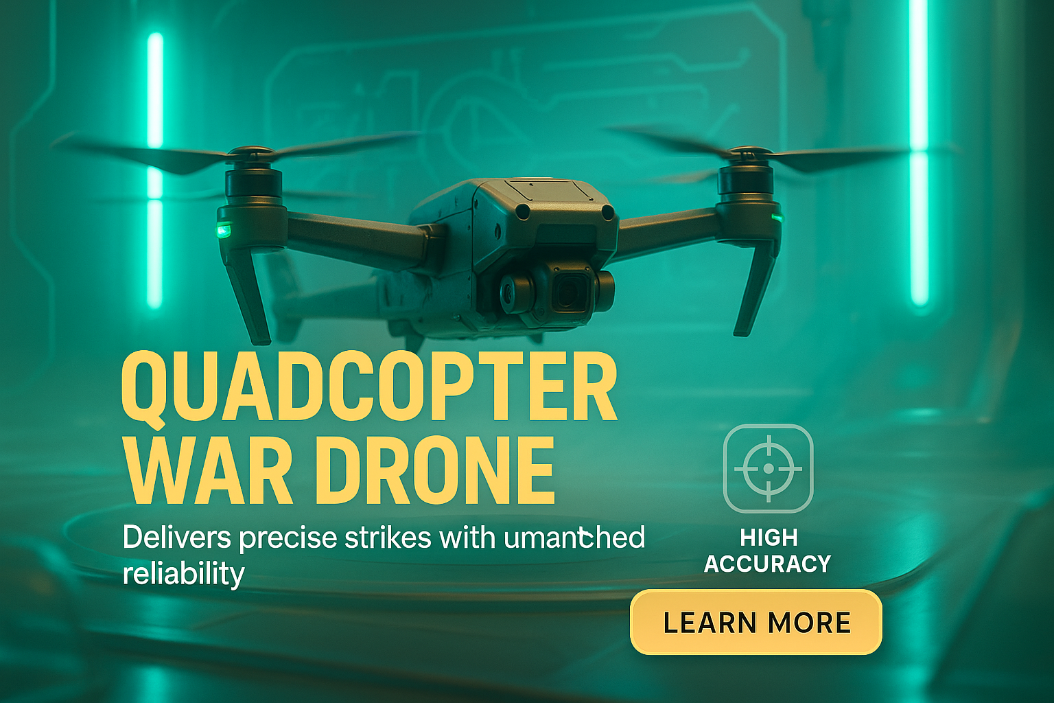 Promotional Graphic for Quadcopter War Drone Featuring High Accuracy