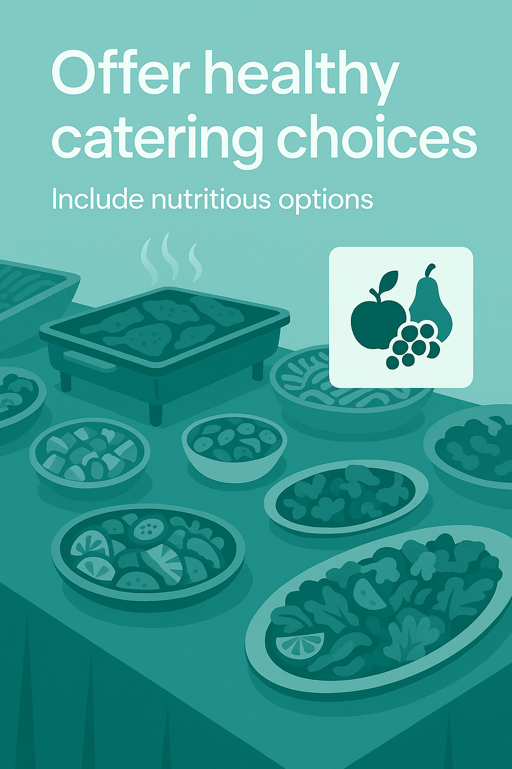 Informative graphic highlighting healthy catering options with a modern, minimalist design. Ideal for catering services or health-focused events.