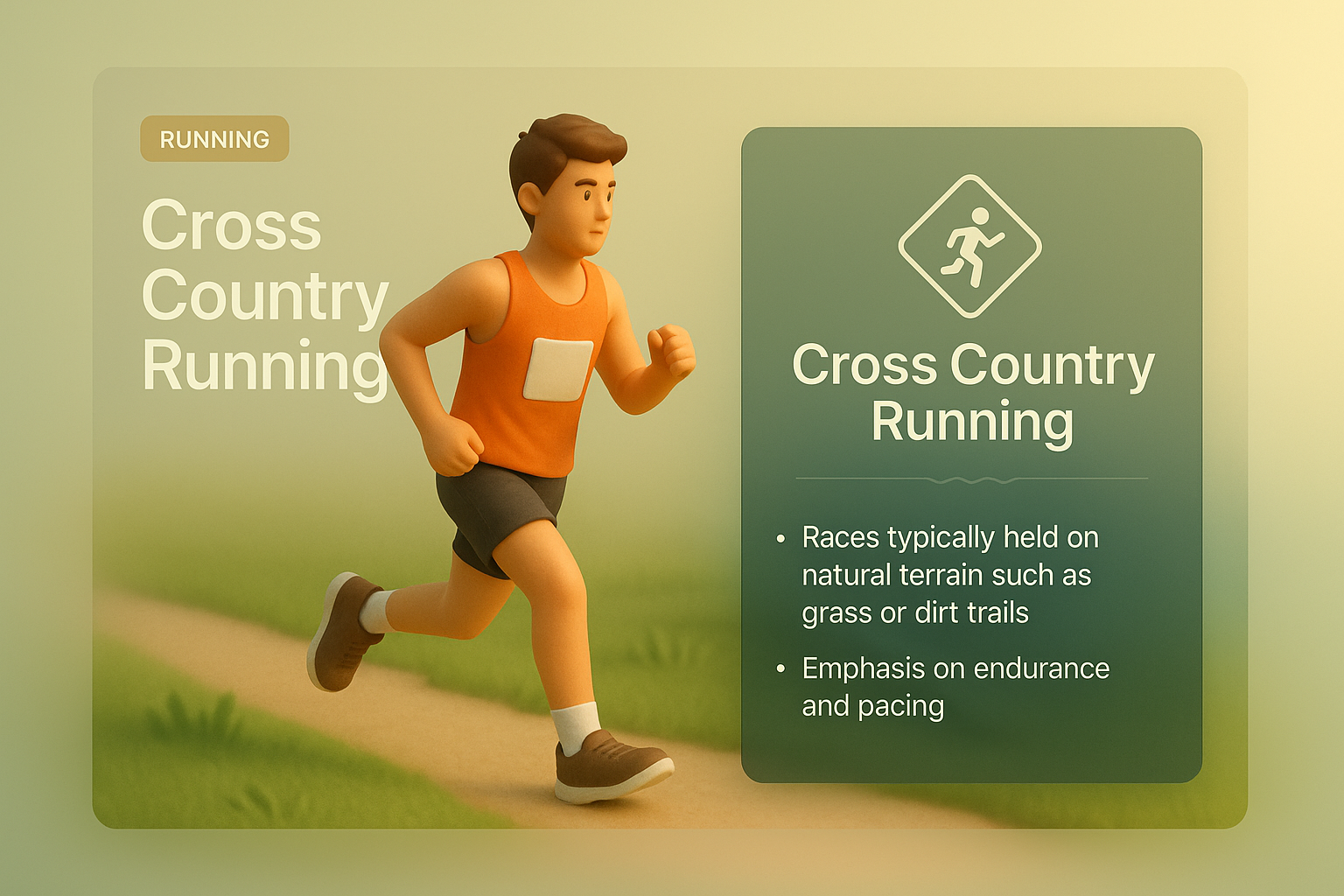 A vibrant 3D illustration depicting a runner on a dirt trail, with a cohesive design that includes informative text blocks and icons, emphasizing endurance and pacing.