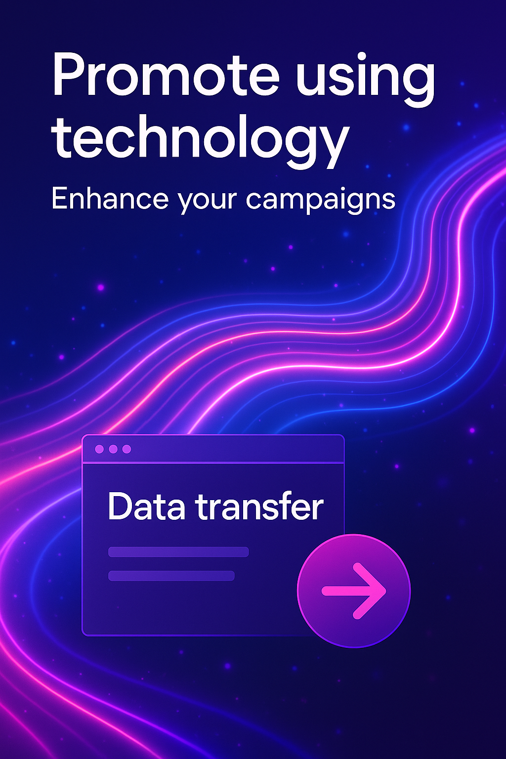 /Collection: /by davooda/Type: PNG/Vibrant promotional graphic featuring abstract light waves and a data transfer element, ideal for marketing technology services and enhancing campaign visibility.