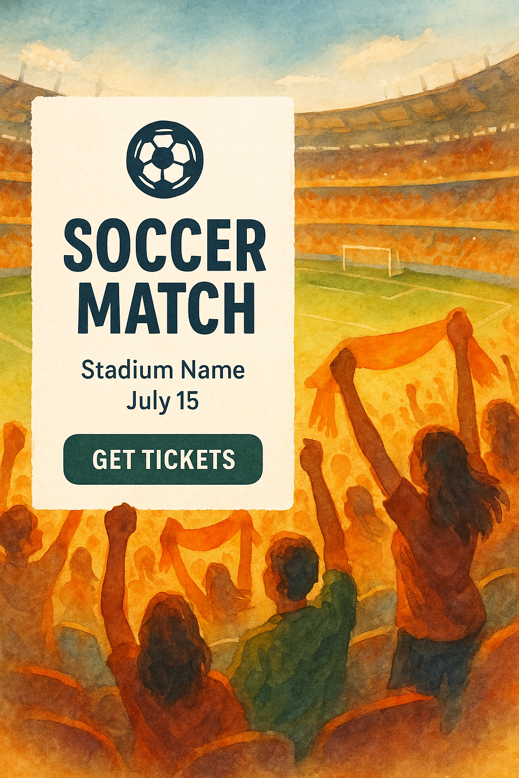 Dynamic Soccer Stadium Advertisement with Bold Typography