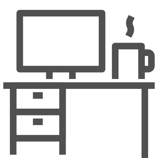 outline simple icon: coffee, computer, desk, monitor, office desk