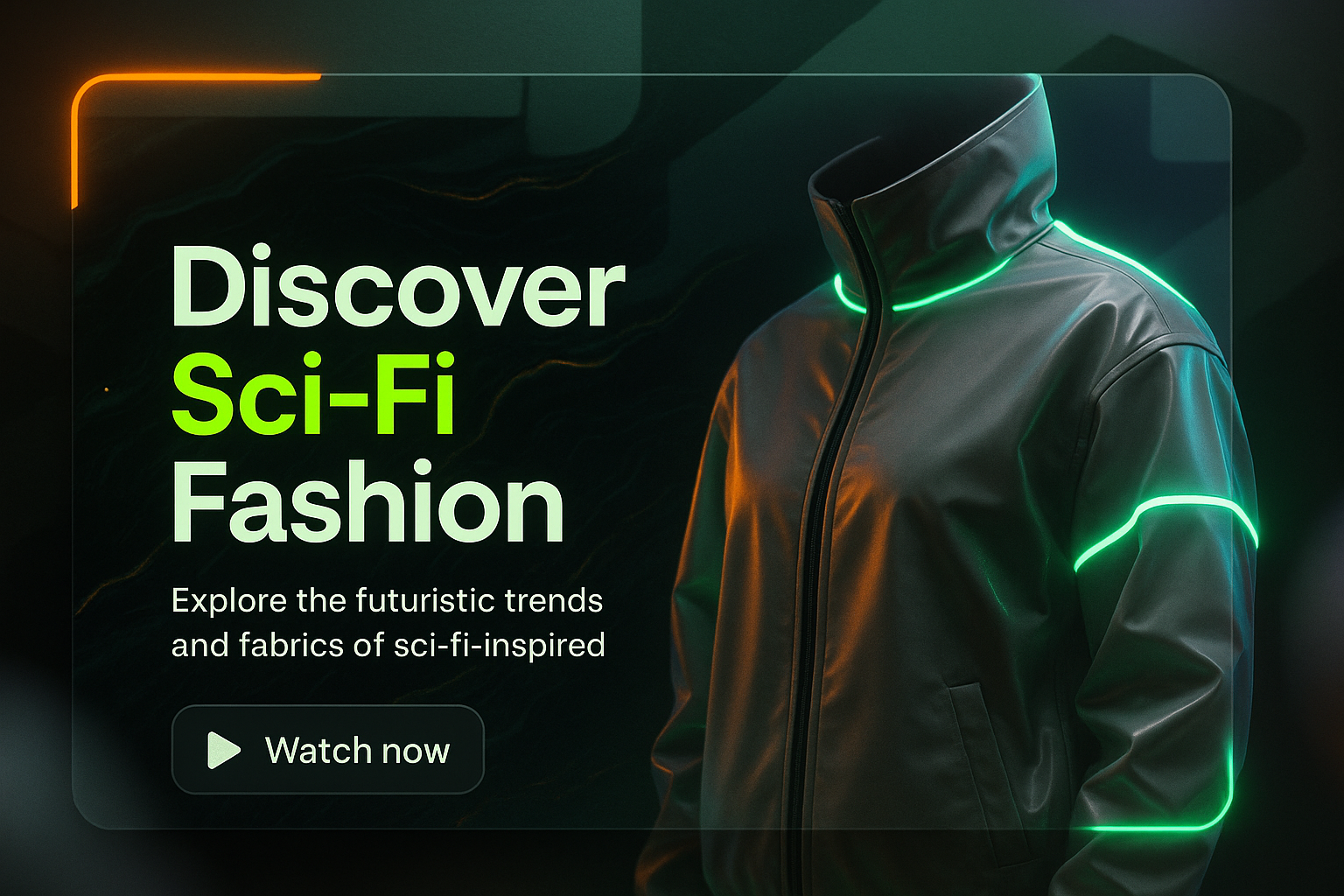 Stylish promotional banner showcasing a sci-fi inspired jacket with glowing accents. Ideal for fashion marketing aimed at tech-savvy audiences.